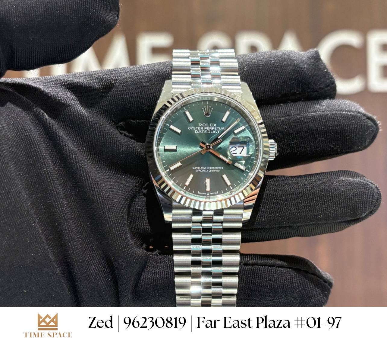 Rolex Nov 2025 Datejust Jubilee Bracelet Fluted Bezel Mint Green Dial 36mm 126234